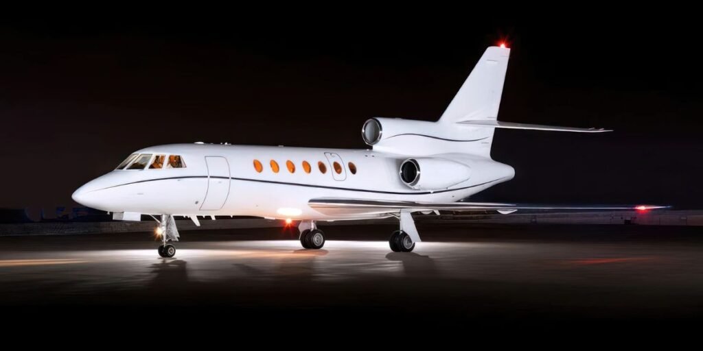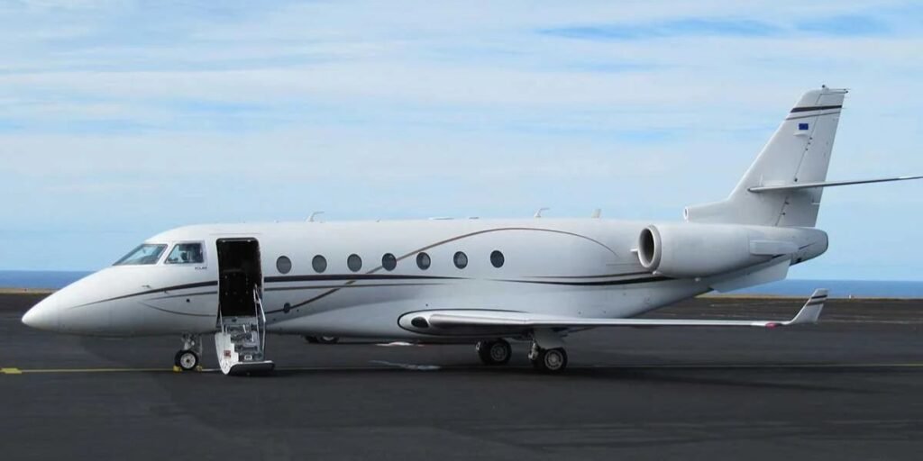 A powerful business jet offering generous cabin space, range, and comfort for intercity private flights.